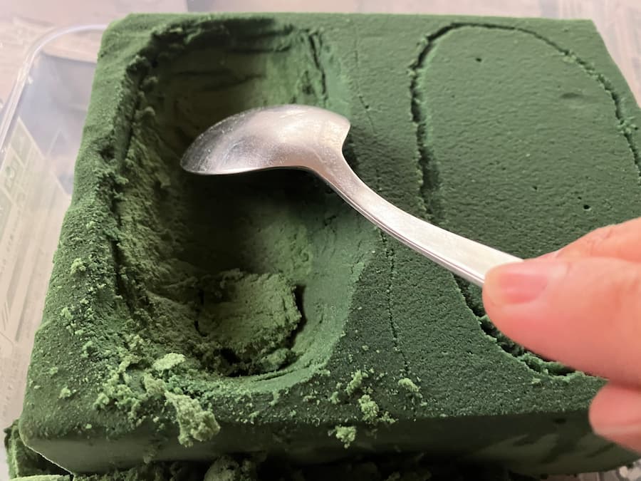 スプーンで掘るだけだと蛹室がボッコボコなので、指で凹凸を消していく。