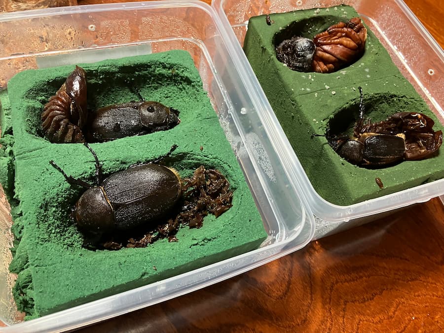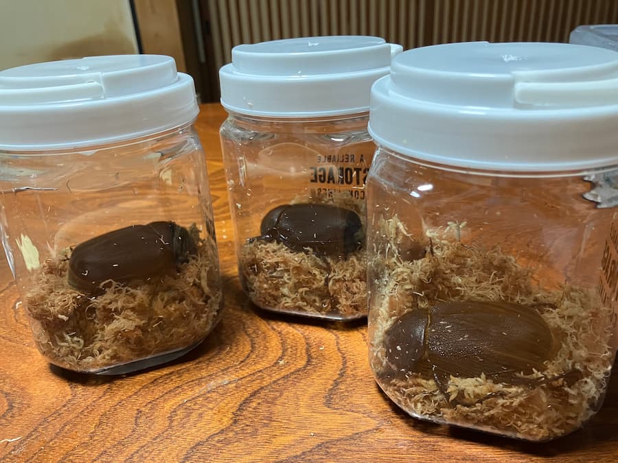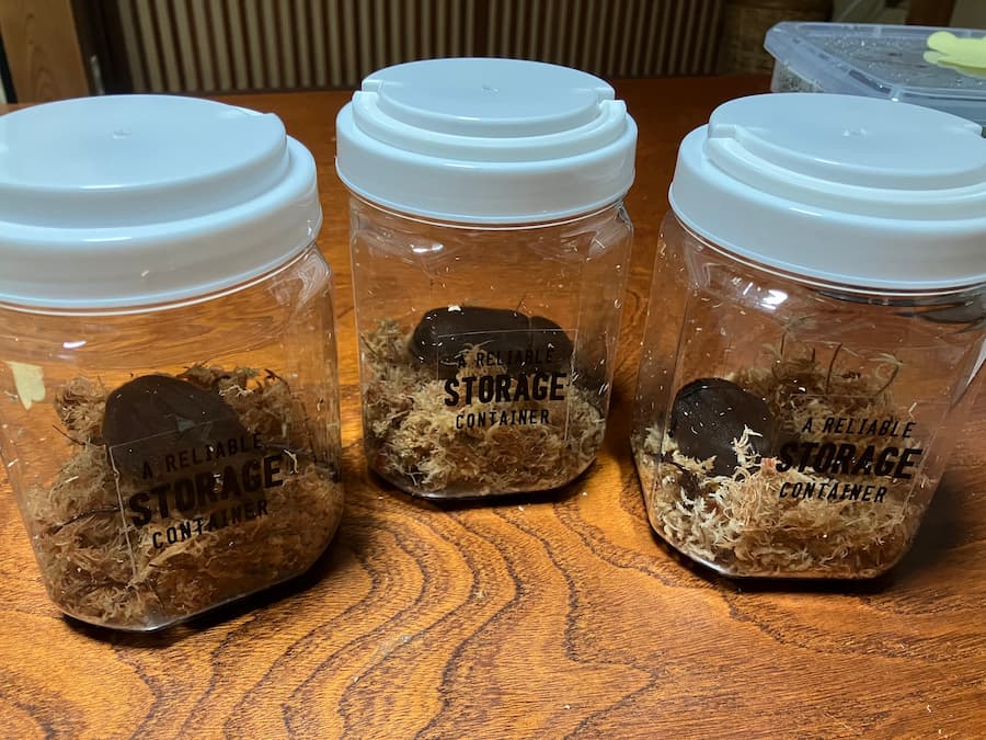 人口蛹室内で後食開始モードになると暴れ回って人口蛹室がボッコボコになるから、早々に別のケースへ移動させる。