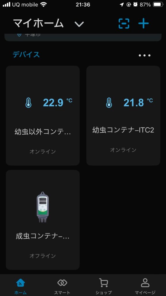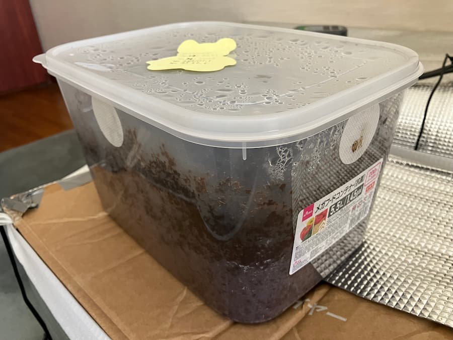 今は成虫が居ないので成虫用コンテナは電源OFFにしており、それ以外は稼働中。