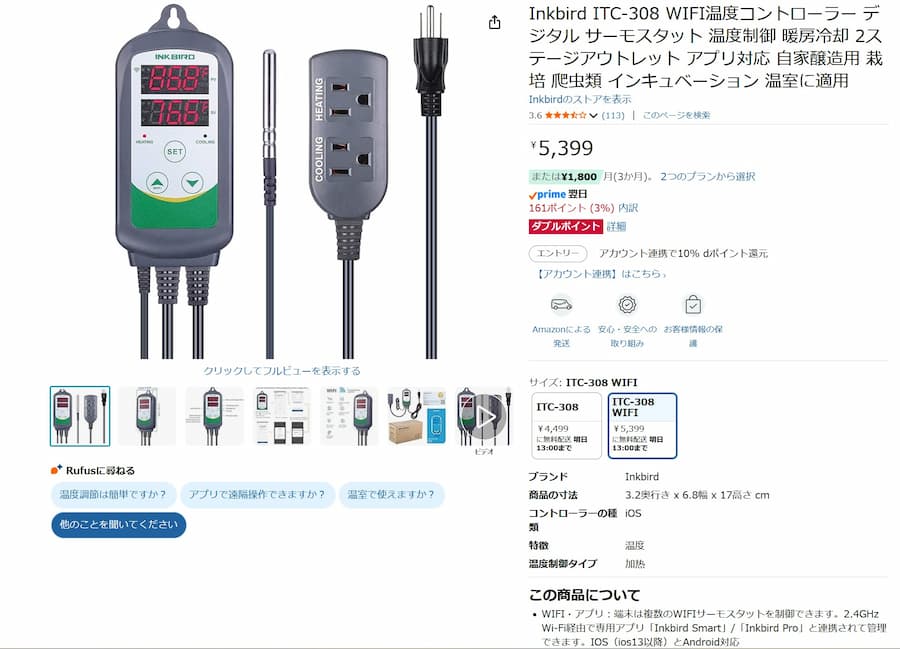 温度管理はサーモスタットを使用。