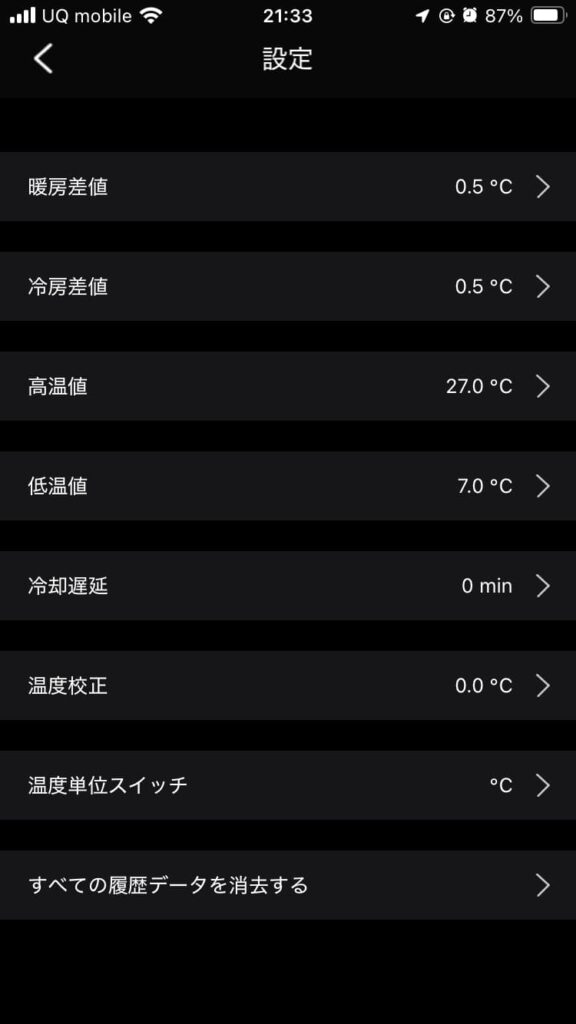 高温値と低温値を設定することで、基準値から外れた温度になった場合はスマホでアラートが鳴る。