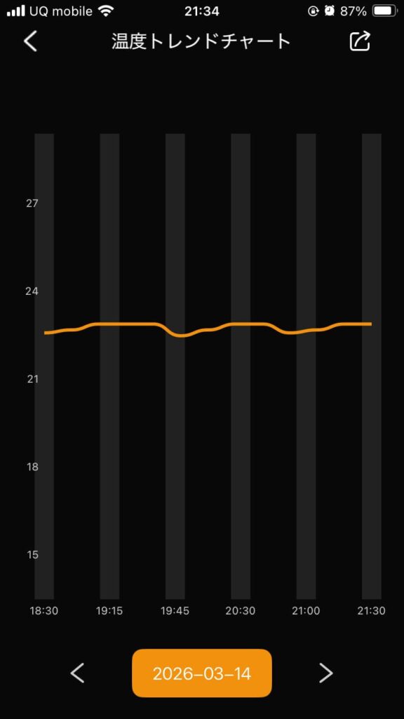 30分刻みでの温度推移を確認可能。